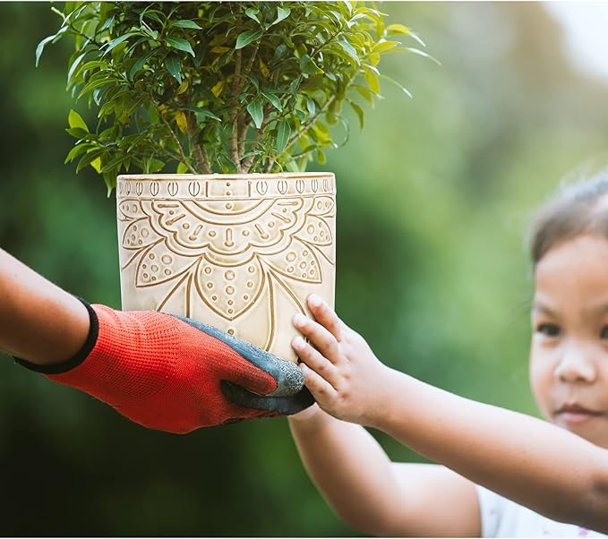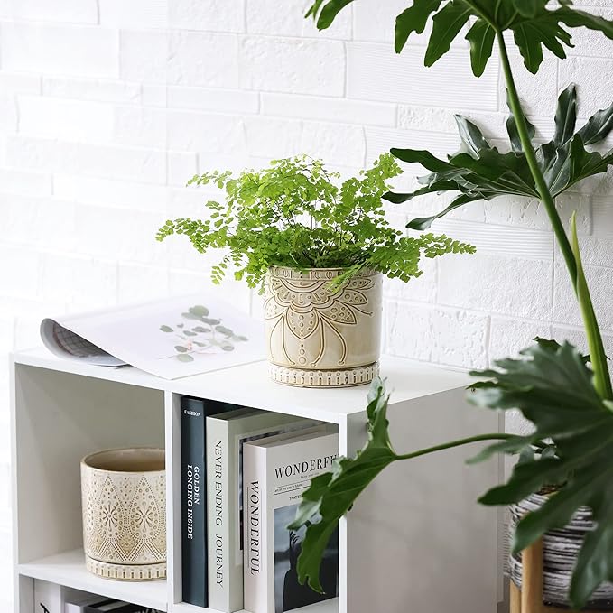 - Size & Package : 6 Inches set of 2. Package: contains 2 ceramic flower pots, 2 ceramic saucers and 2 mesh pads(NOT INCLUDE PLANTS)