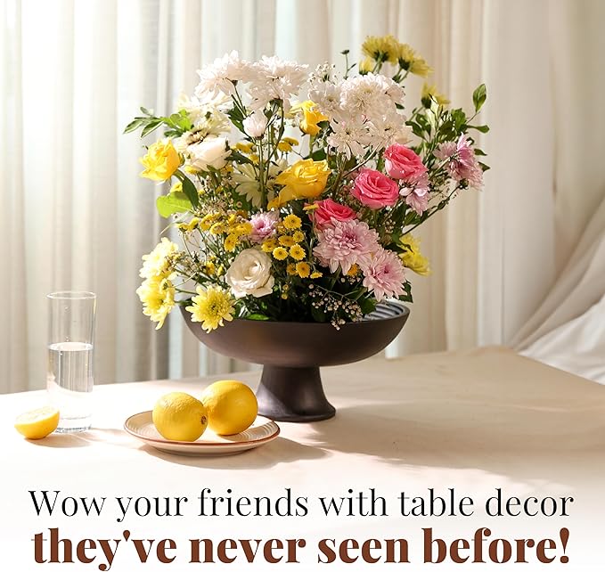 - UNIQUE DESIGN: Our black fruit bowl with ribbed detailing will end your search for the perfect christmas table centerpiece. It is designed to make a stylish accent piece for your kitchen countertop and dinnerware, and acts as the perfect womens gifts or housewarming gifts.