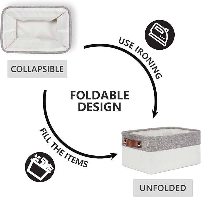 - 【Unique Design】Set of 6 small storage baskets, dimensions(each): 11.8(L) x 7.9(H) x 5.1(W) inches. Collapsible storage baskets bring you organizing convenience and a sweet home. Great for socks, underwear, books, magazines, toys, baby clothes, pet products, wipes, towels, decorations, office supplies, DVDs, and gifts.