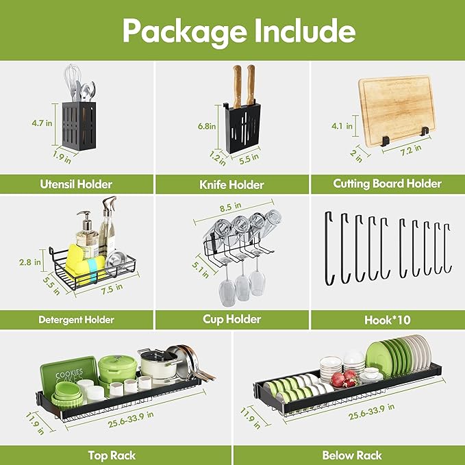 - ๐งฐ DIY Friendly Assembly with Tools: Includes a hex key and step by step visual guide for straightforward installation. Predrilled holes let you mount the sink dish drying rack horizontally above the sink without permanent alterations, perfect for renters or those avoiding wall damage. No technical skills required, assemble in minutes