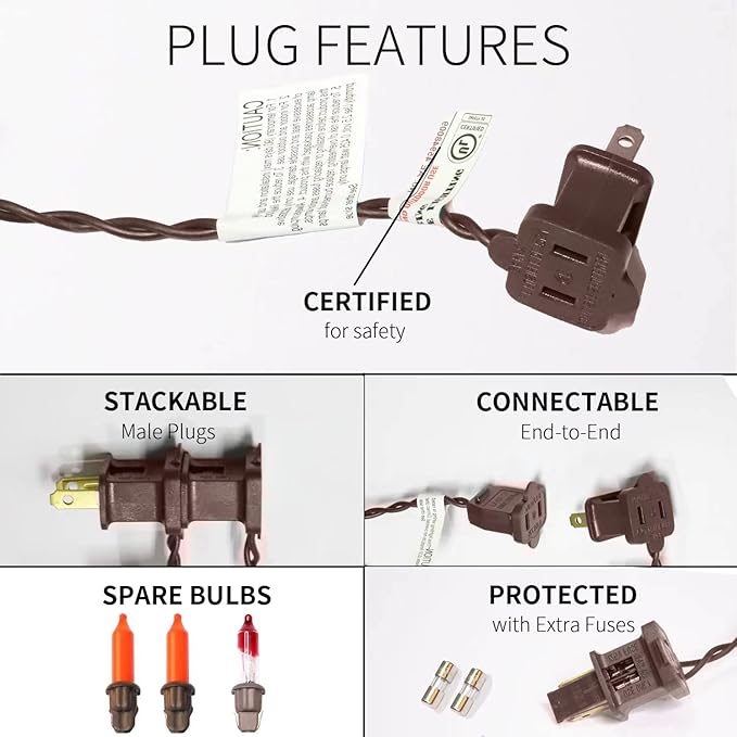 - Safty and Easily: High quality UL certified products ensure the safety of you and your family, Decorate with 100 halloween incandescent mini lights with brown wire will give a soft festive feel to your Christmas.