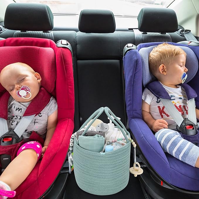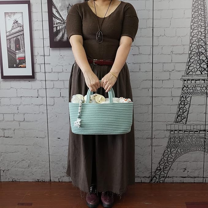 Diaper Caddy Organizer for Baby Cotton Rope Nursery Storage Bin Basket Portable Holder Tote Bag for Changing Table Car Travel Baby Shower Gifts Newborn Essentials Registry Must Haves Light Green