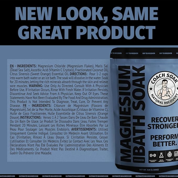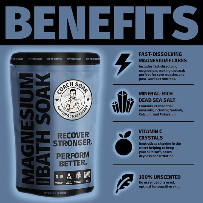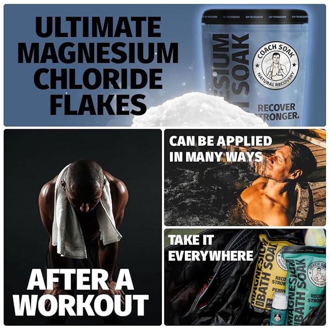 Coach Soak Recovery Bath Soak - Alternative to Epsom Salt Bath Soak - Fast-Absorbing Pure Magnesium Flakes with 21 Minerals, Bath Salts & Essential Oils - 3 lb (1 Pack) - Unscented