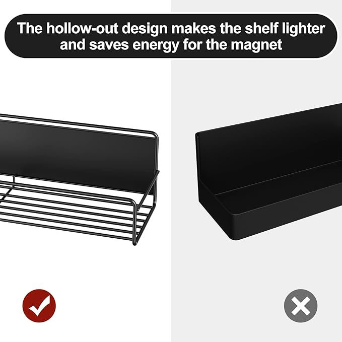 2 Pack Magnetic Spice Rack Organizer, Space Saver for Refrigerator and Microwave Oven, Magnetical Fridge Shelf for Jars, Seaoning, tins and Utensils Black