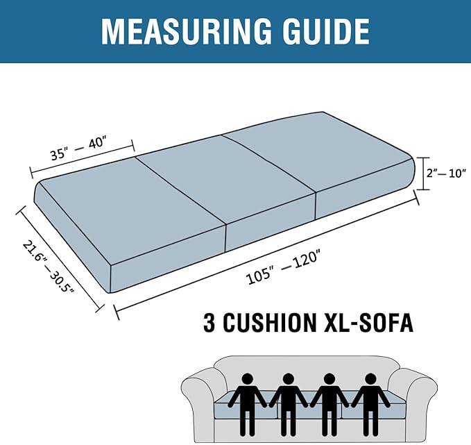 - GREAT FIT: Slipcover Set of 3. This innovated cushion slipcover is crafted from durable and soft high stretch knitted jacquard fabric. Sofa Seat Cover(fit total sitting area between 105-120 inches). Feature one-size-fits-most, kindly measure before ordering. Suitable for both T cushion and Box cushion styles