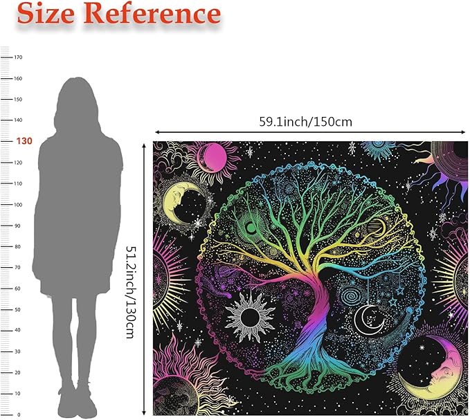 - This tapestry is unique design with tree, sun, moon, stars, and galaxy space elements. It's made from high-quality polyester fabric, which is skin-friendly, soft, lightweight, durable, and has no peculiar smell. It adopts HD-printing technology, non-fading. Feathering vivid colors, crisp lines and delicate hemming