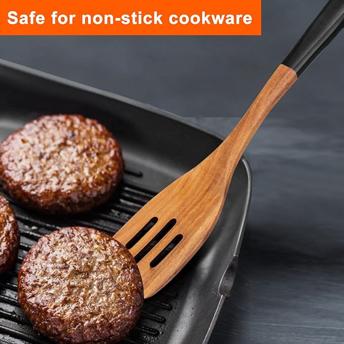 - MORE SAFE and HEALTHY: Our wooden cooking utensils are made of food-grade teak wood. Very durable and a great replacement to plastic, silicone utensils.