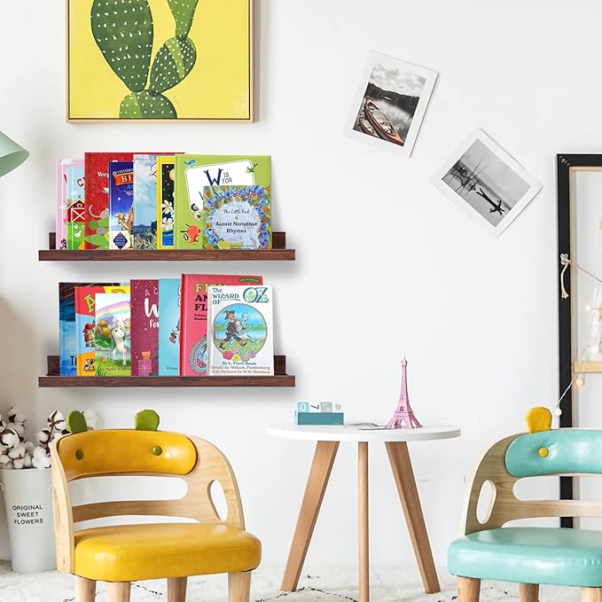 - Perfect Gift: The well-made and good-looking floating picture shelf not only is an ideal gift for moms and children to display and storage books, but also perfect for office, kitchen and bathroom use. Photo ledges can also easily display your favorite pictures frames and photo albums.So it is an ideal birthday & Christmas gift.