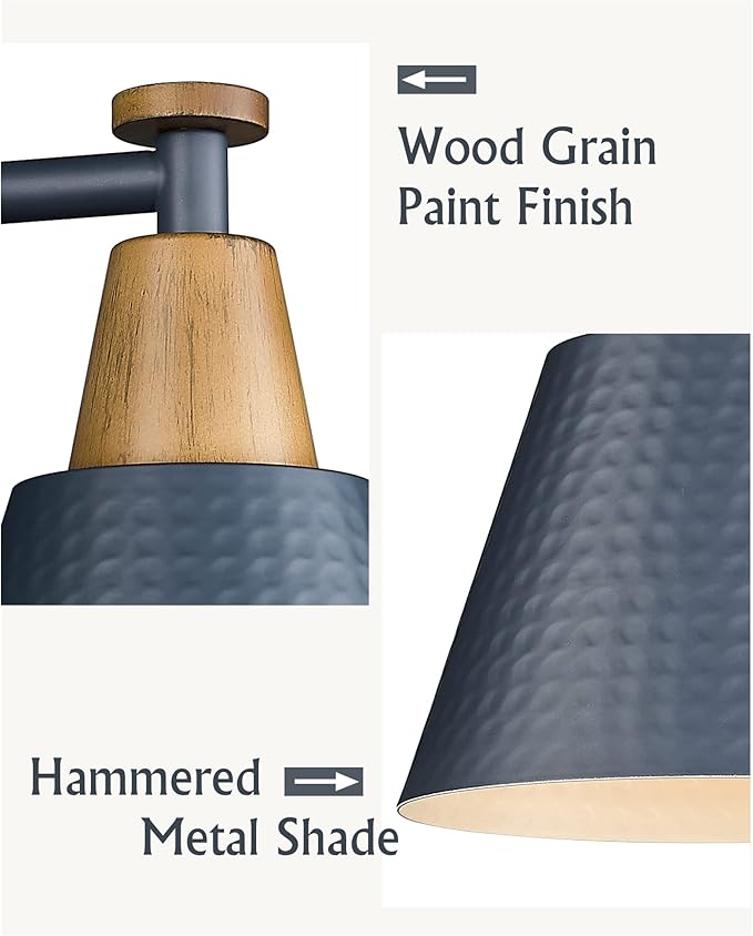 FEMILA 2-Light Bathroom Light Fixtures, Modern Bathroom Vanity Light with Hammered Metal Shade, Dark Blue Sconces Wall Lighting for Mirror Kitchen Bedroom, 4FG59B-2W Blue