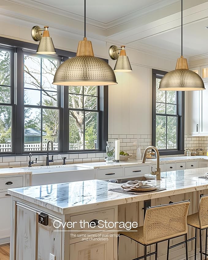 - 【Modern & Industrial Design】The antique brass sconces set of 2 create a sleek and minimalist look. Unlike other traditional design,this bathroom sconce wall lighting has hammered metal shade and wood grain paint finish on the top,making itself modern yet tasteful!