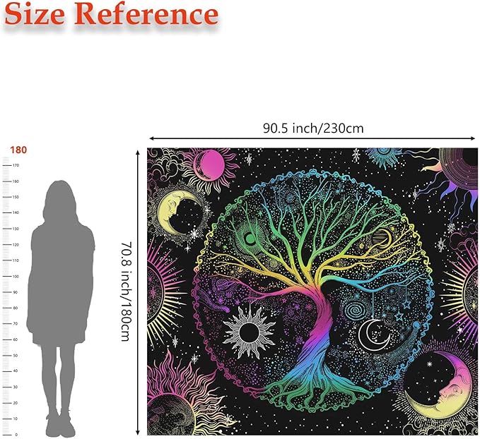 - This tapestry is unique design with tree, sun, moon, stars, and galaxy space elements. It's made from high-quality polyester fabric, which is skin-friendly, soft, lightweight, durable, and has no peculiar smell. It adopts HD-printing technology, non-fading. Feathering vivid colors, crisp lines and delicate hemming
