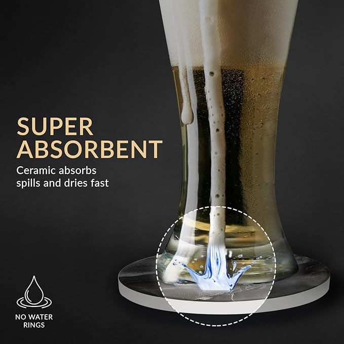 - SUPER WATER ABSORBENT – Within seconds, any liquid placed on our coasters are instantly absorbed without leaving dripping, puddling, stickiness, or stains. Complement your table decor with our drink coasters set that are thick enough to absorb any liquid, hot or cold, yet thin enough to blend in perfectly.
