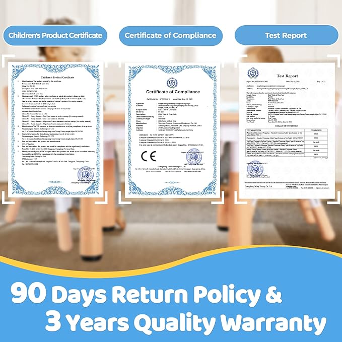 - 【CPC & CE certified, Safe & Stable】We focus on every detail to ensure kids' safety. FUNLIO toddler tables and chairs are CPC and CE certified. The set is made of MDF and PPC plastic, healthy materials for children to touch. The items are well made and quite smooth, without any burrs. Rounded table corners keep the child safe. Curved seat back is good for a child's spine while sitting. Adjustable non-slip table feet and the 220lbs weight-bearing capacity help it stand stable on the ground.