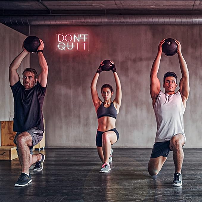 - Style & Material: The sign of Don't Quit (it also means to DO IT, don't give up)neon light is an exquisite artistic neon light decor sign. The LED neon light's combination of red and white is novel. The Neon Signs are made of Acrylic LED, Silicon Strips, and ABS Material, with No risk of glass breakage or leakage of hazardous materials