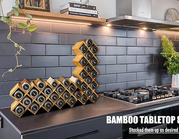 - 【Keep Your Kitchen Clean and Tidy】- A clean and orderly kitchen countertop is really important. The bamboo/ wooden spice rack (spices are not included) keeps your seasonings and herbs in order. With the help of spice rack organizer, you could save more space for your kitchen.