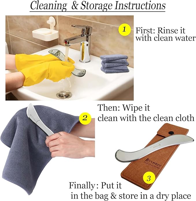 - ♕This scraping massage tool set with a black felt protective bag for easy storage and carrying.This Gua Sha Scraping Massage Tool are made of medical grade stainless steel. The edge is polished with mirror surface. It will not scratch the human body during use.