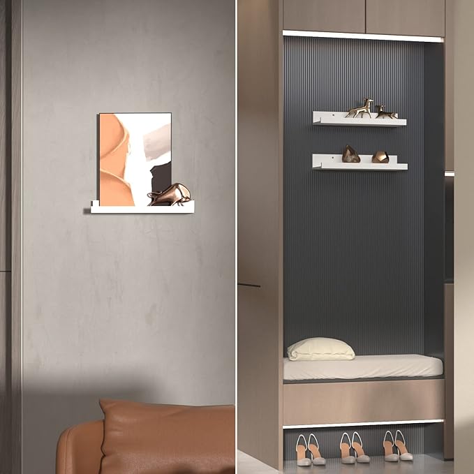 - Beautiful hanging shelves: These white ledge shelves are both stylish and sturdy, crafted from high-quality MDF board. The wood grain appearance adds sophistication to your room decor, making it more fashionable and modern.