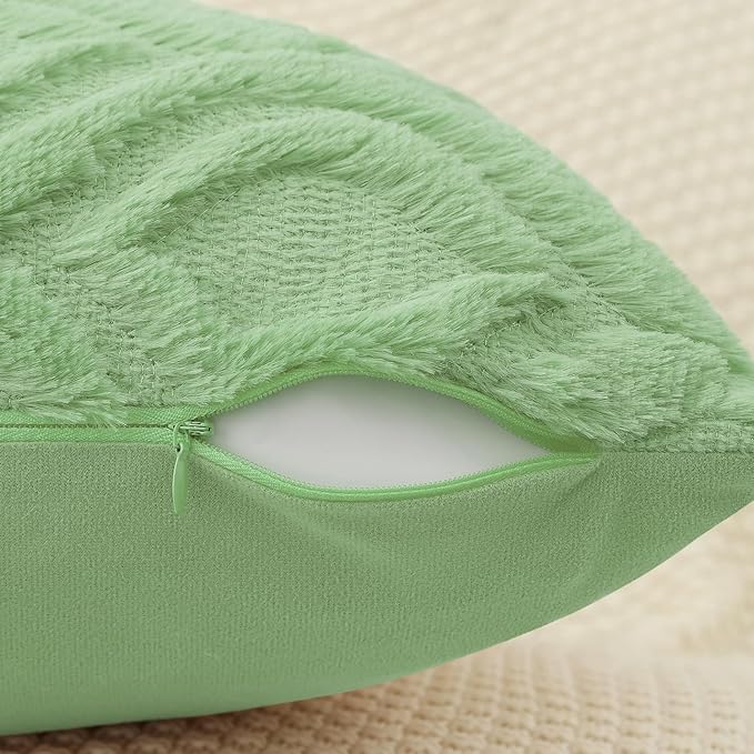 decorUhome Throw Pillow Covers 18x18 Inch Set of 2, Soft Plush Decorative Faux Fur Sage Green Solid Couch Pillow Covers, Accent Farmhouse Neutral Square Euro Pillow Cases for Sofa Bed Living Room