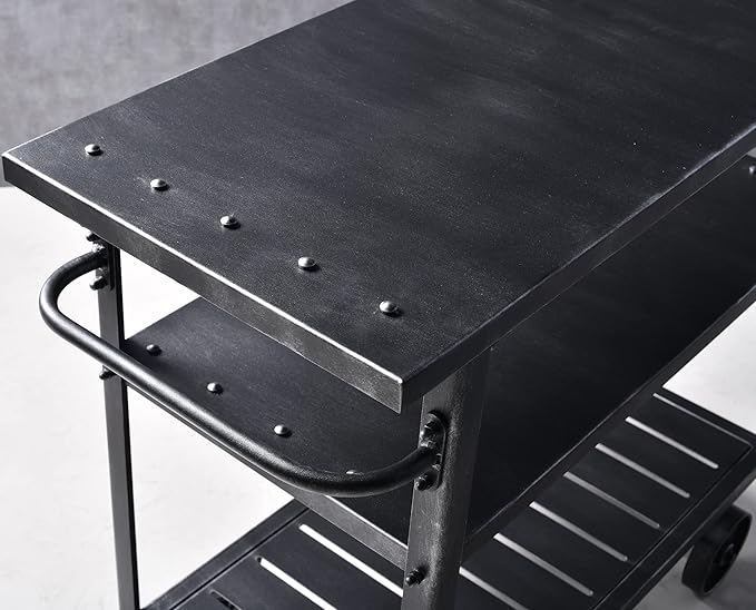 - 【ALL FOR YOUR CONVENIENCE】Equipped with 4 industrial use rolling casters with brake feet , easy & convenient to keep the serving cart roll it around to anywhere you need or place in a permanent place