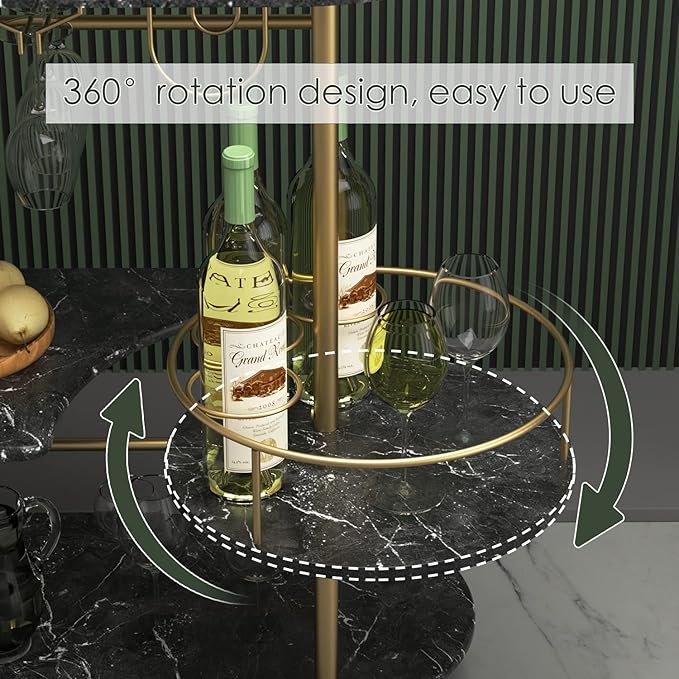- Large Capacity Rolling Cart & Caster Design: Gold bar cart with N360 Rotating Design 4 casters can rotate 360°, and with brake function. And the caster wheels make it easy to keep this cart moving where the party's happeninThis entertaining bar cart is a beautiful, modern design boasting an elegant gold finish.