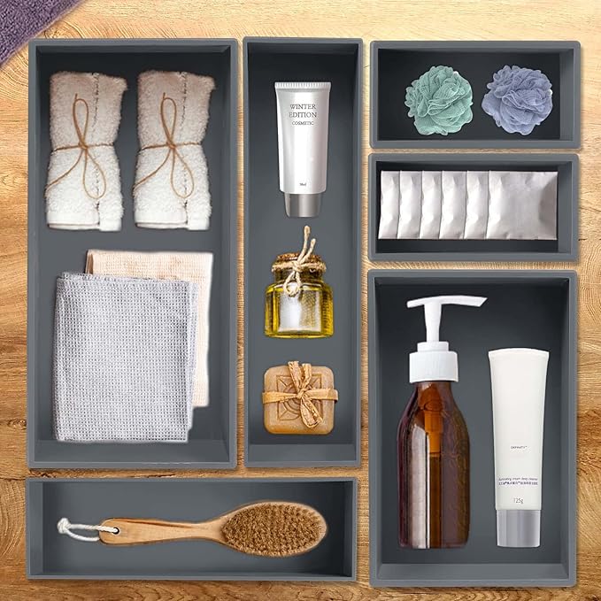 Bamboo Drawer Organizer - Kitchen Utensil Organizer Silverware Tray Cutlery Holder,Office Desk Supplies and Accessories,8.9 * 3 * 2.6,Grey