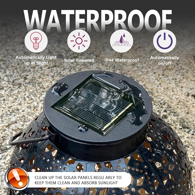 - Energy-Saving and Waterproof: The garden lantern automatically turn the lights on at dusk and off at dawn, saves energy. The hanging solar lantern made with quality metal, which is water-resistant and weather-resistant, could be a nice outdoor decoration through out the whole year.