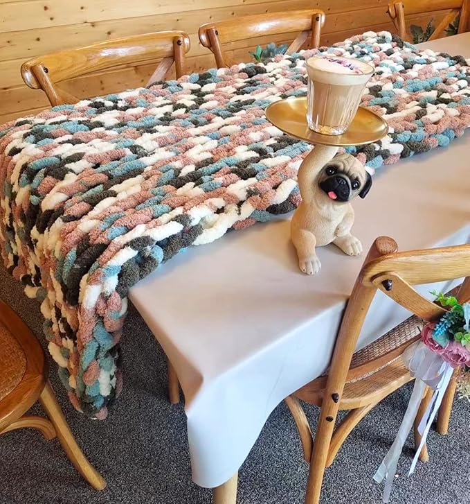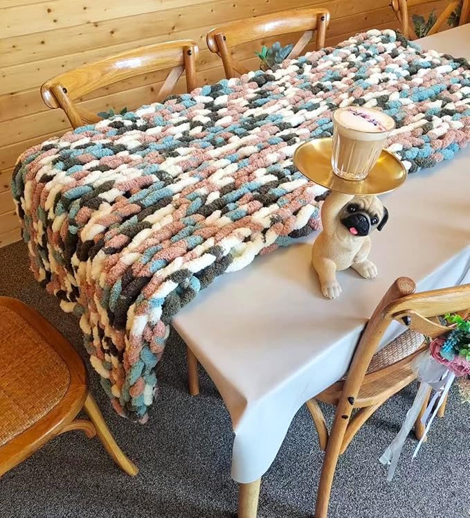 DDL&HEXI Chunky Chenille Blanket 100% Hand Knit with Jumbo Chenille Yarn (50"x60") Super Soft Large Throw Bed Blanket for Couch, Sofa, Home Decor - Machine Washable (02)