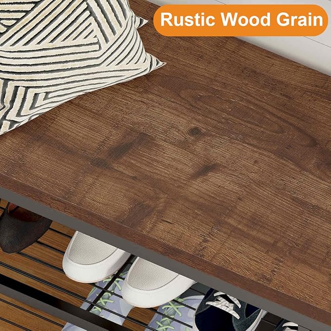 - 【Versatile Design】The 5-tier shelves entryway shoe rack can be installed on either the right or left side to suit your preferences. We have included an anti-tipping device to avoid unexpected tipping, while the provided plastic pads protect your wood floors from scratches. With it’s rustic chic aesthetic, this coat rack with bench is perfect addition to your entryway, hallway, foyer, mudroom or bedroom.hallway, foyer, mudroom or bedroom.