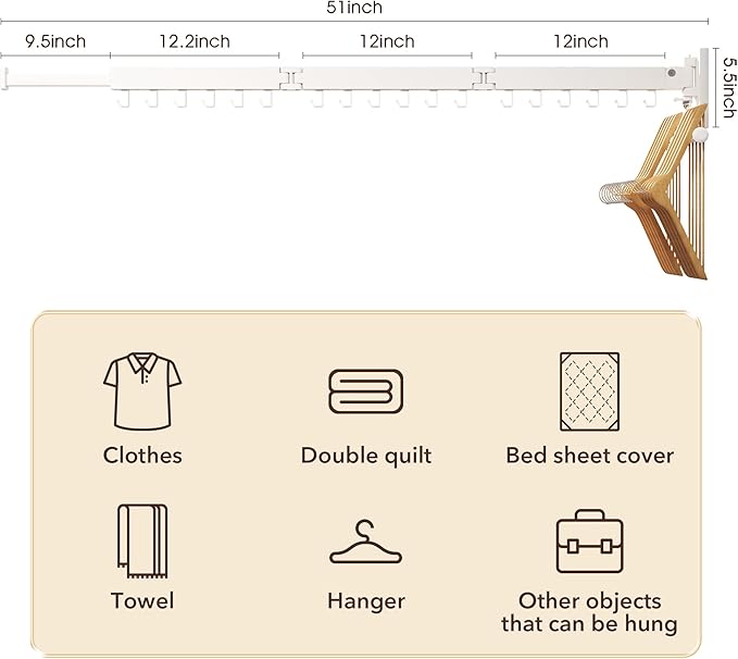 Clothes Drying Rack,Laundry Drying Rack Wall Mount, Wall Mounted Clothes Rack,Retractable,Collapsible(Tri-Fold),Drying Rack Clothing,can Fold Upward & Left & Right,Space Saver, White Color