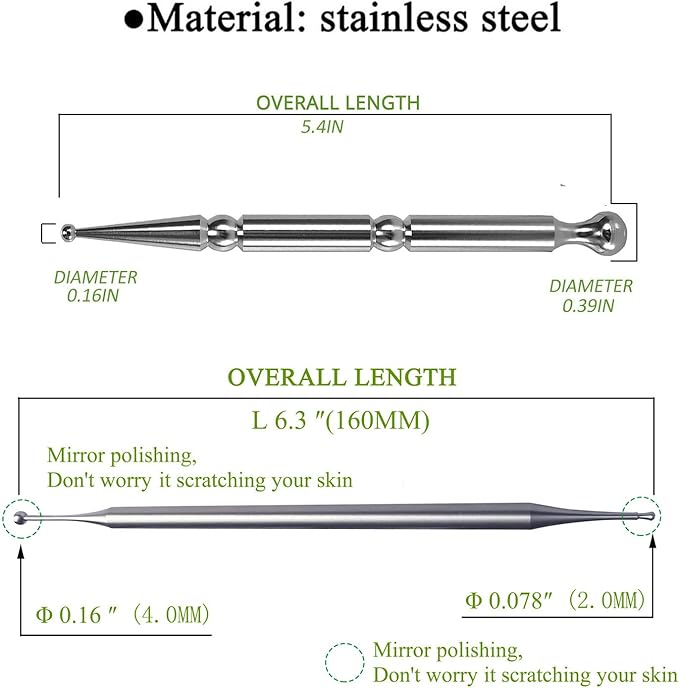 - ♕【Material】:This deep tissue massage tool is made of stainless steel.Round design at the both ends,It won't hurt your ears, face or other skin during sliding.