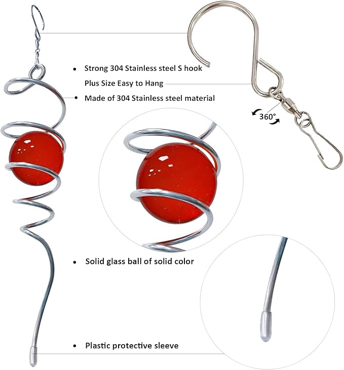 - 【Easy To Position】The Spiral can't spin by itself ,if you want to make it spin like the video ,need add 1pc motor (not include) ,or combine it with a wind spinner or any rotatable hanging ornament to help it rotate. Come with 1pc 2 inch colored glass orb(not paint), 1pc silver color spiral tail twister,and 1pc swivel hook accessory, ready to hang and enjoy.