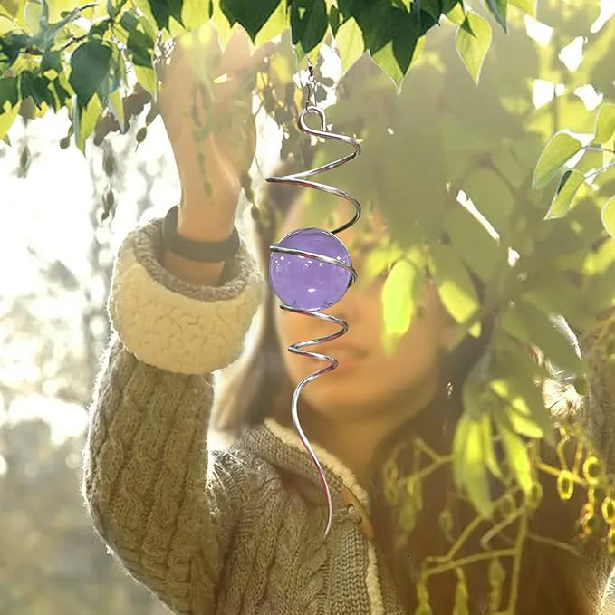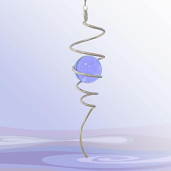 - 【Unique Spiral Design】The gazing ball spiral is an unique hanging ornament ,Also it can help to stabilize 3D wind spinners or yard decor from swing when it rotate.When the spiral tail rotates to the left, the glass ball seems to move upwards,when the spiral tail rotates to the right, the glass ball seems to moves downward,the glass ball seems to like floating and dancing in air, presenting a magical optical illusion!