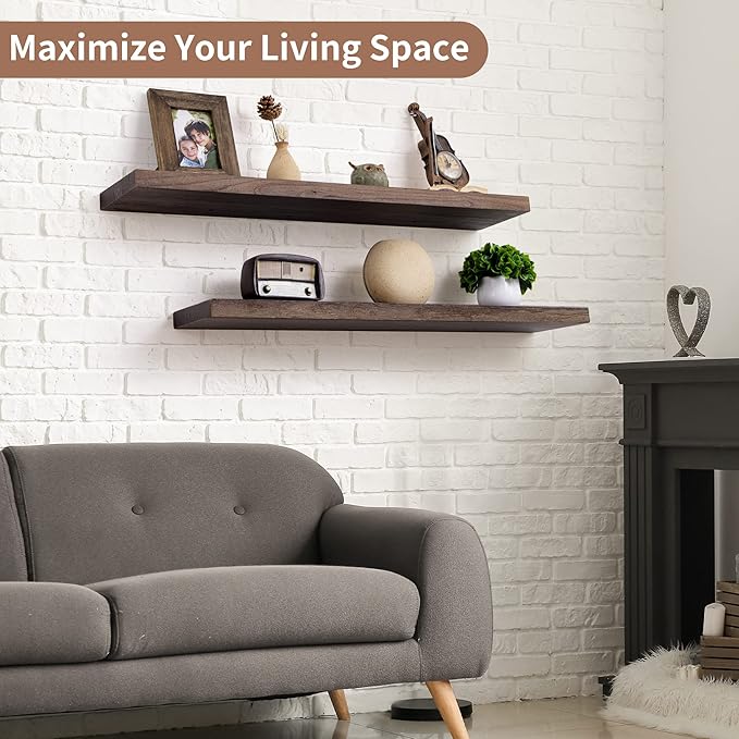 - 8" DEEP-MORE SPACE MORE TIDINESS: Axeman 36 inch floating shelves are designed to be deeper and thicker than traditional floating shelves, with a thickness of 1.37 inches and a depth of 8 inches. You can display a variety of items, such as photos, books, and knickknacks on these sturdy and spacious natural wood floating shelves