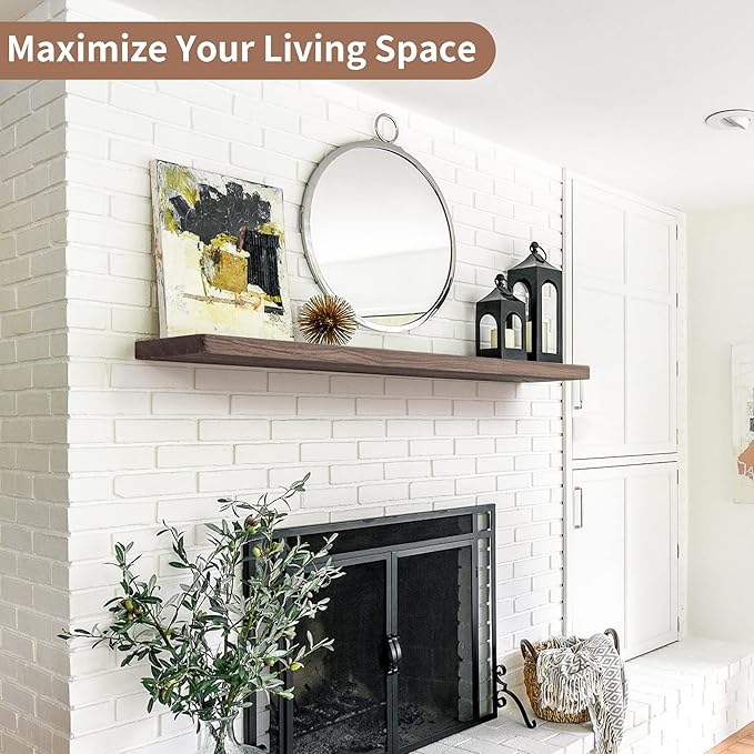 Axeman Floating Shelves for Wall, Rustic Elm Wood 48'' x 8" Deep Wall Shelf with Invisible Bracket, Large Long Wall Mounted Storage Shelves for Living Room, Bedroom, Kitchen, Bathroom Decor, Walnut