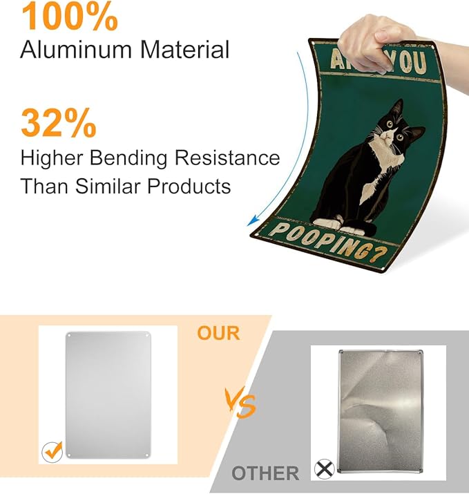 - 【Durable and Weather-Resistant】The toilet signs for bathroom are made from 100% rust-free strong aluminum, This black cat decor vintage metal sign comes in bright, eye-catching colors that won't fade over time.