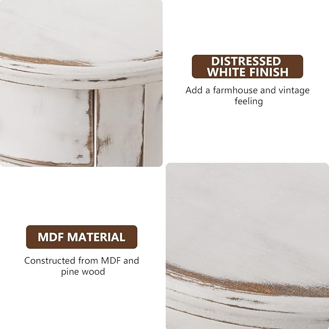 - Vintage Inspired: Drawing from ancient designs, this perfectly crafted one drawer nightstand has a drawer pull contrasting beautifully against the light white wood. The distressed edges on the drawer emphasize the artistic touch. This is a vintage approach to the design, which adds more value to it, as crafting older designs gets more credit in this era.