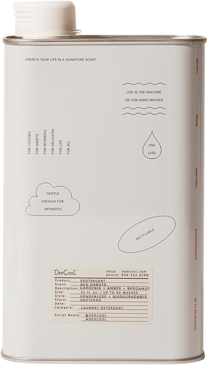 DedCool Liquid Laundry Dedtergent (Red Dakota, 32 fl oz) Luxurious Fragrance, Scented, Removes Stains, Ideal for 60 Washes, Infused with Natural Essential Oils, Vegan, Non-Toxic, Cruelty & Dye Free