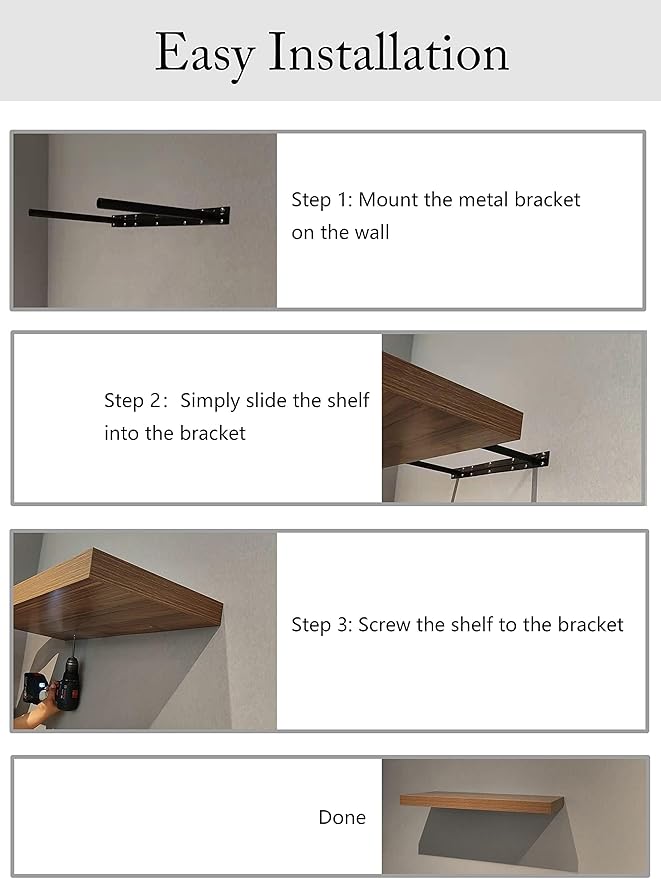 - ππ°ππππππππ π΄ππππ π©πππππππ: The strong metal brackets attach the shelves to the wall firmly and are hidden behind the shelves. The single integrated bracket of wall shelves will make installation easier. Installation instructions and standard mounting hardware is included for easy assembly.