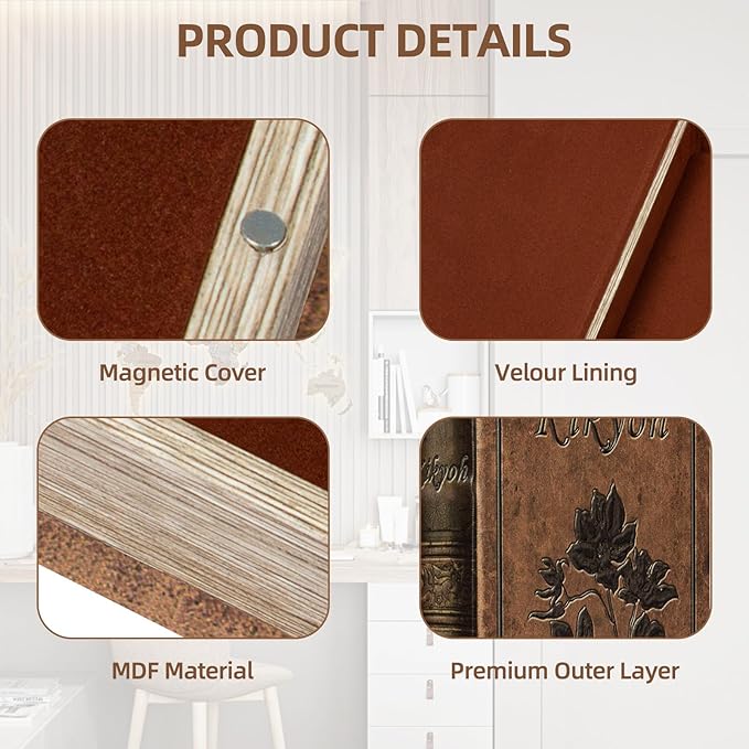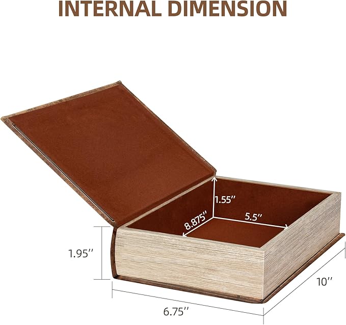 - Exquisite book box: Using imitation leather cover and velvet lined, with the magnetic covered, there's no need for keys to open