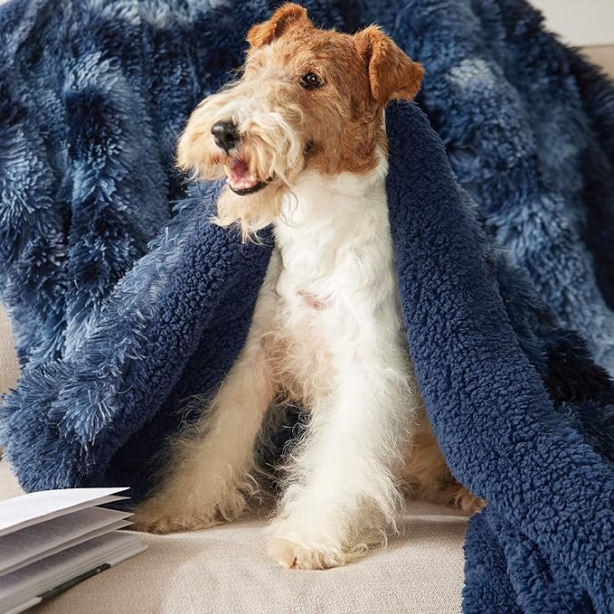Bedsure GentleSoft Fluffy Tie Dye Navy Blue Blankets Queen Size for Bed, Thick Sherpa Faux Fur Fleece Fuzzy Plush Winter Warm Soft Queen Blankets, Bedroom Decor Blue Cozy Gifts for Women Men, 90x90