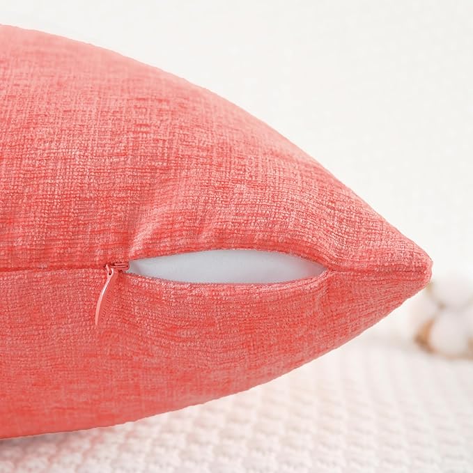 CaliTime Throw Pillow Covers Decorative 16 X 26 Inches Pack of 2 Cozy Chenille Cushion Cases for Couch Sofa Bed Living Room Home Living Coral