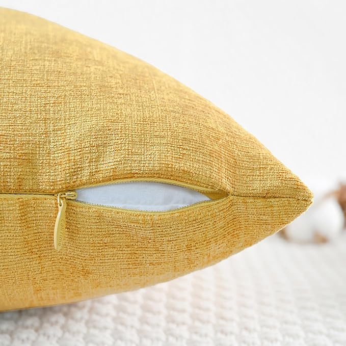CaliTime Throw Pillow Covers Decorative 16 X 26 Inches Pack of 2 Cozy Chenille Cushion Cases for Couch Sofa Bed Living Room Home Gold