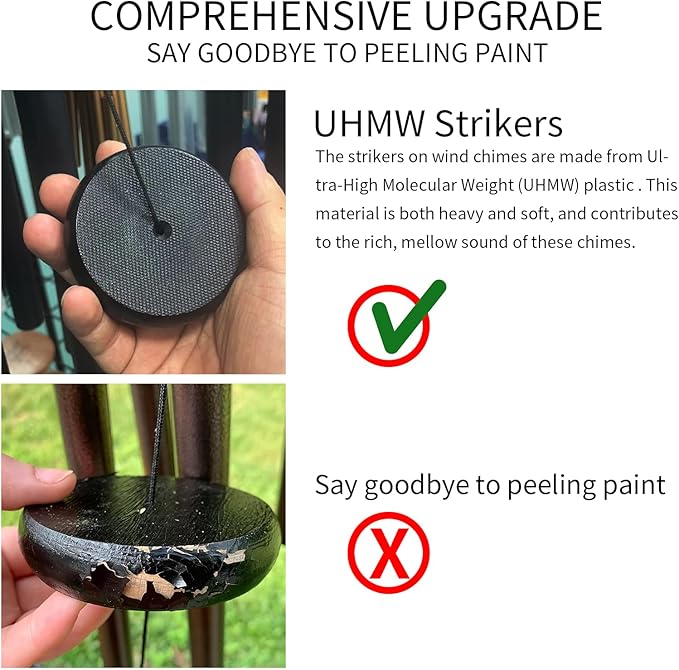 - Deep Tenor and Bass Sounds: Our wind chimes produce soothing melodies that sound like the music of church bells. The expert tuning creates a deep tone that's relaxing and beautiful.