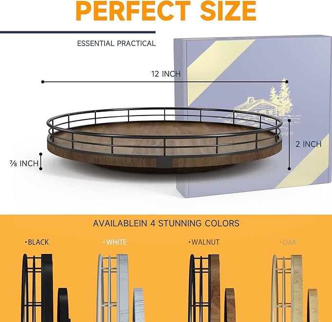 - ππππππ ππππππ:The base is large enough to hold a lot and heavy objects and successfully rotate. It is made of lovely oak wood that is strong with a sturdy metal rack to secure the items on the turntable. The turntable smoothly revolves all around making the items an easy reach. There is also included anti-slip pads on the bottom of the Lazy Susan, for extra surface protection.