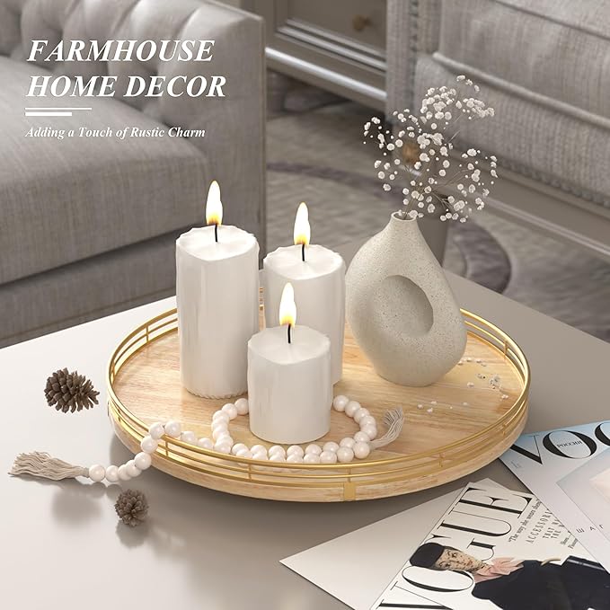 Farmhouse Oak 13" Lazy Susan Turntable Organizer for Cabinet, Round Wooden Lazy Susan Organization and Storage for Dining Table, Pantry, Kitchen, Countertop, Cupboard,Home Decor