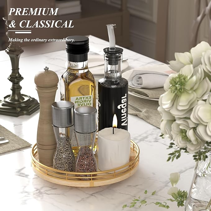 - ππππ πππ πππ ππ: Perfect for a wedding, Birthday, housewarming gift, Mother's Day gift, or centerpiece for any occasions. Tastefully packaged, our turntable organizer makes a thoughtful and practical gift for someone who loves home organization. No assembly was required.