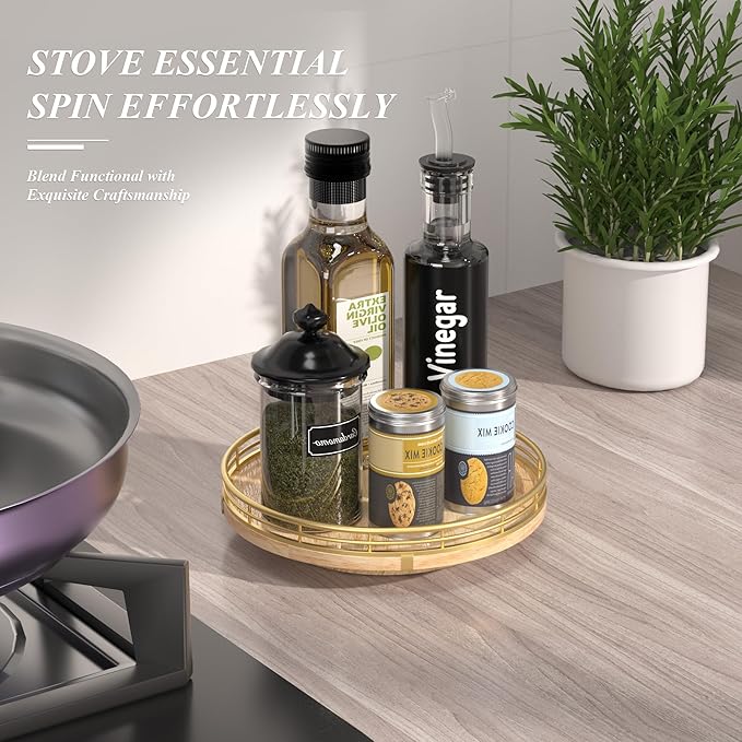 - πππππππππ πππ:This lazy susan is enough to be used nearly anywhere, perfect in the kitchen, cabinets, dining room, office, etc. on your kitchen or dining table for organizing condiments, napkins, decor, candles. Easily reach all your medicine, spices, canned goods in your pantry. Next to your stove, hold all the essentials essences, bowls, greenery, and a butter dish. Good idea for the office desk and craft room to organize. Keep your coffee stuff perfect at your coffee station.