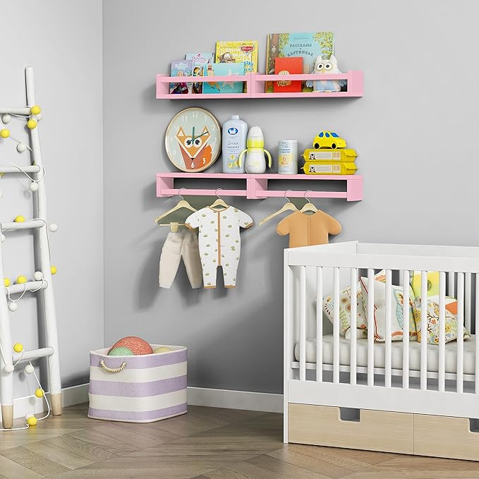 - [Great for Nursery and Kids Room] Mount these floating shelves on your nursery wall, Kids can stow books, toys, stuffed animals and games in wall shelving, where they’ll be off the floor and easy to reach.