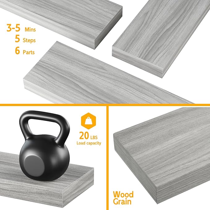 - Concealed support & simple installation: The support design that extends into the shelf is strong and can hide the bracket well, achieving a simple and beautiful decorative effect; Moreover, the installation is very simple; The parts and installation instructions for installation are included with the package; The installation can be completed in as short as 15 minutes as long as the order of the instructions is followed