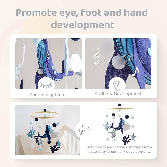 - Ocean-inspired Nursery Decor: Elevate your baby's room with our charming ocean-themed crib mobile. Adorable sea creatures dance among corals, white shells, and felt balls, creating a mesmerizing undersea atmosphere that captivates young minds